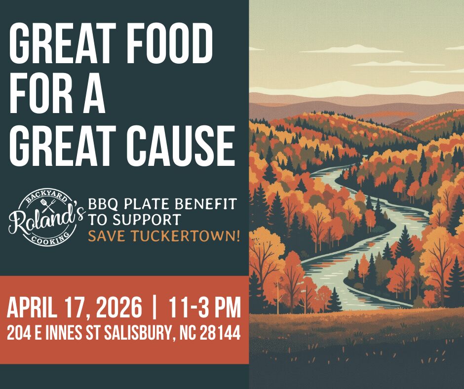 Join us on April 17 for a BBQ Plate Benefit for Save Tuckertown with Roland’s Backyard Cooking. Each plate is $15, and every purchase helps support the conservation of publicly accessible lands we all love.